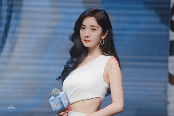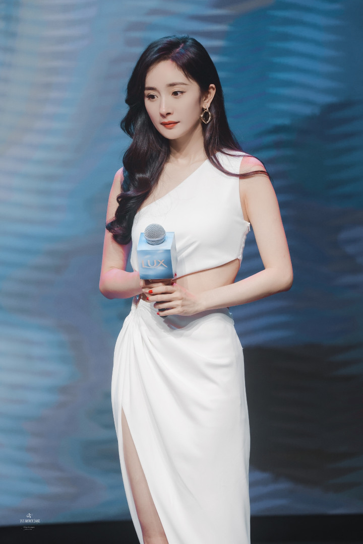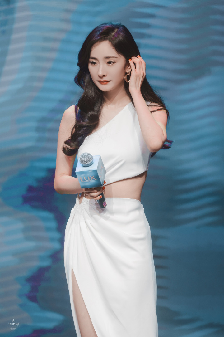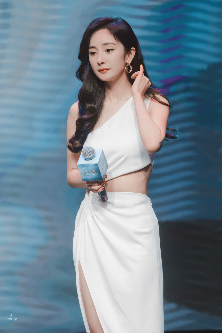 杨幂白裙开衩露美腿杀!卷发红唇侧倚门廊,一眼心动狙击