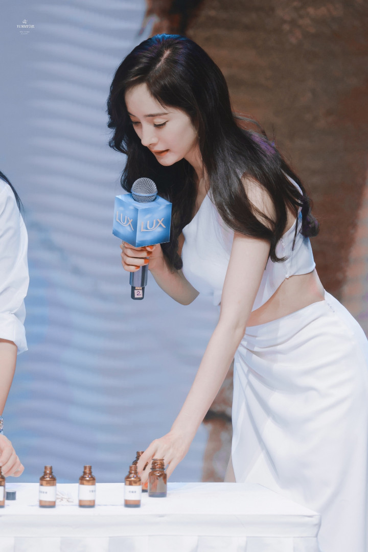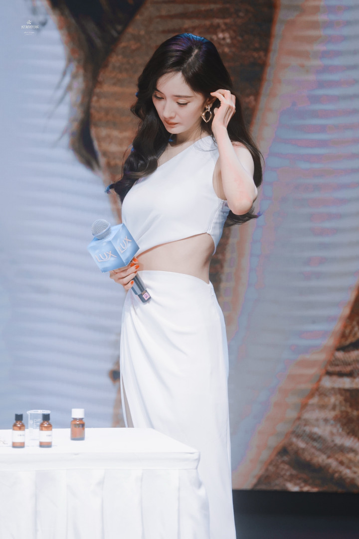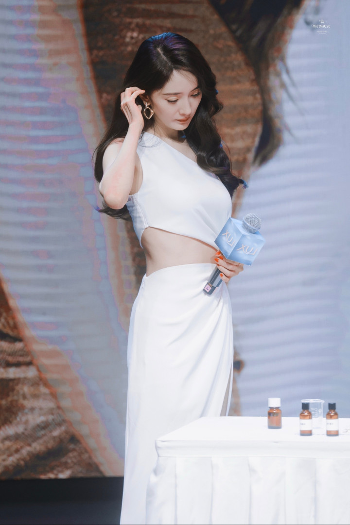 杨幂白裙开衩露美腿杀! 卷发红唇侧倚门廊, 一眼心动狙击