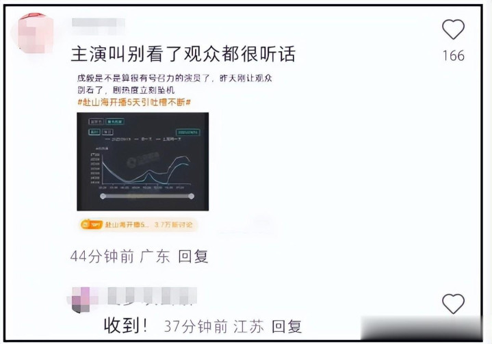 网友也表态,该剧制作粗糙,剧情漏洞百出,现在还出现了镜头穿帮,主演教育观众,把仅存的一些剧粉都赶走了,又没有新人入场,仅靠粉丝支撑很难撑住,暴跌是正常的。
