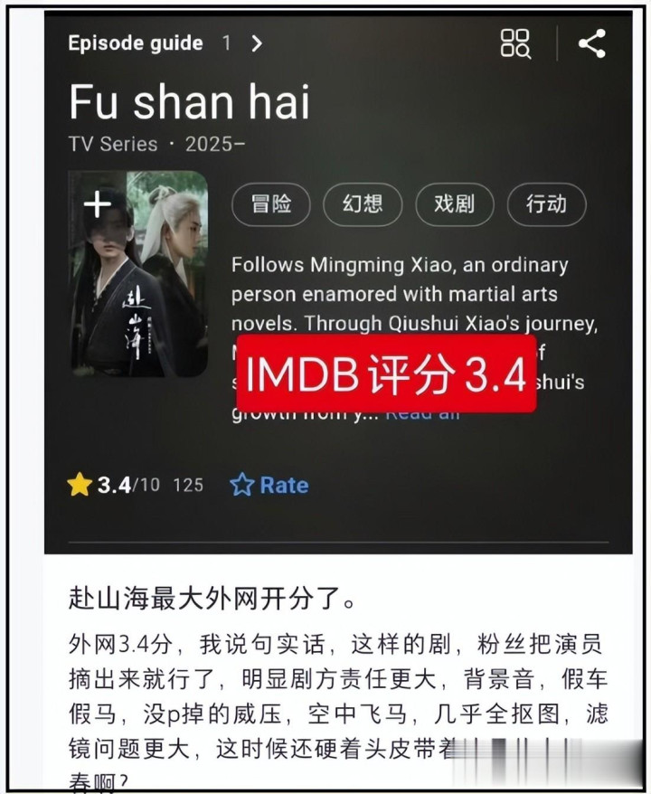 但人生难免高低起伏,就算明星也不例外,若是成毅能坦然面对,虚心接受批评,相信大家都可以接受。如今,他的新剧不仅在国内评价低,在外网的评分也只有3.4,创下国产剧外网评价新低,说是拖后腿也不为过。