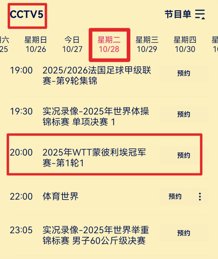 明天蒙彼利埃冠军赛第一比赛日的实况,CCTV5将进行同步直播。