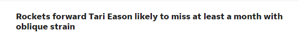 乌度卡透露伊森遭遇腹斜肌拉伤,将缺席4到6周的时间。