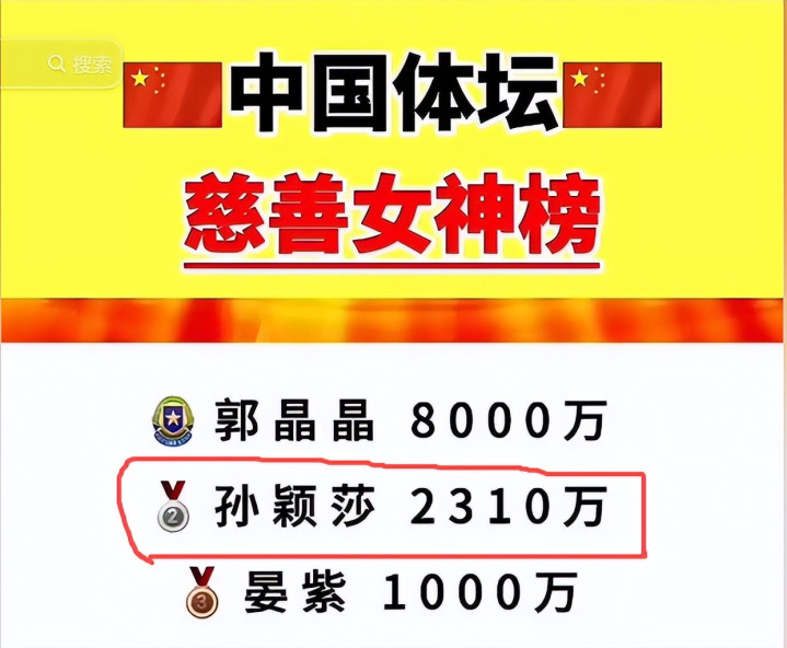 不过话说回来,即便我们的乒坛球后孙颖莎,她再有钱,也会心系我们祖国同胞,常年不断地在给诸多基金会默默无闻的捐款。