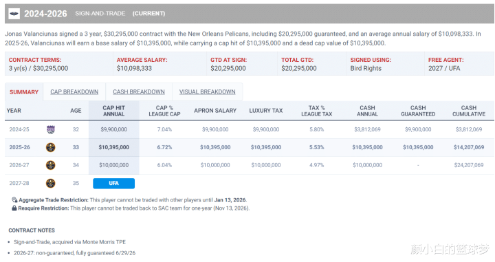 这也是为什么掘金队要说服瓦兰留队,掘金就是希望瓦兰一场比赛打15-20分钟为约基奇减压,掘金将26-27赛季瓦兰1000万转为全额保障也是相信他在35岁之前仍旧具备很高的水准。