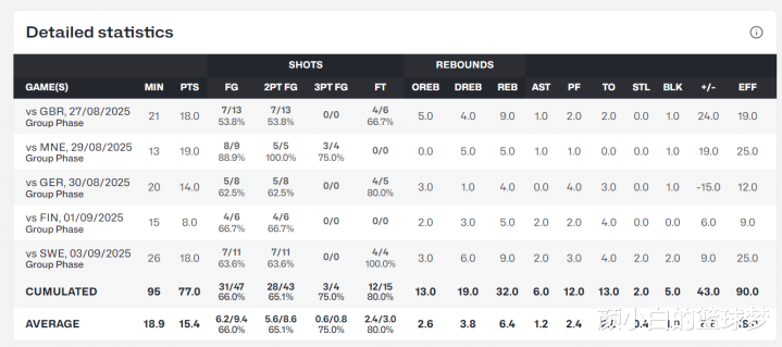 33岁的瓦兰还是立陶宛的脊梁,在小萨没有出战的情况下,他场均18.9分钟,拿到15.4分6.4篮板1.2助攻0.4抢断1盖帽,命中率66%,三分命中率75%,在他有体能的时候他依旧有很高效的贡献。
