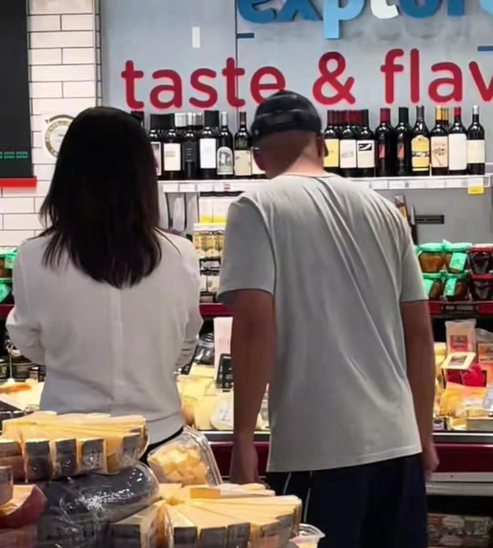 黄立行戴着黑色帽子,穿着灰色短袖,身形倒是依旧挺拔,可鬓角和头顶那显眼的白发,还是让人感叹岁月不饶人。两人在货架前时不时地交流几句,偶尔相视一笑,默契十足,一看就是感情特别好。