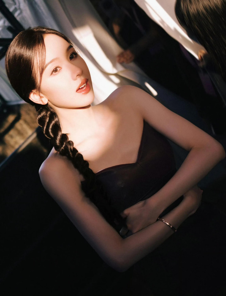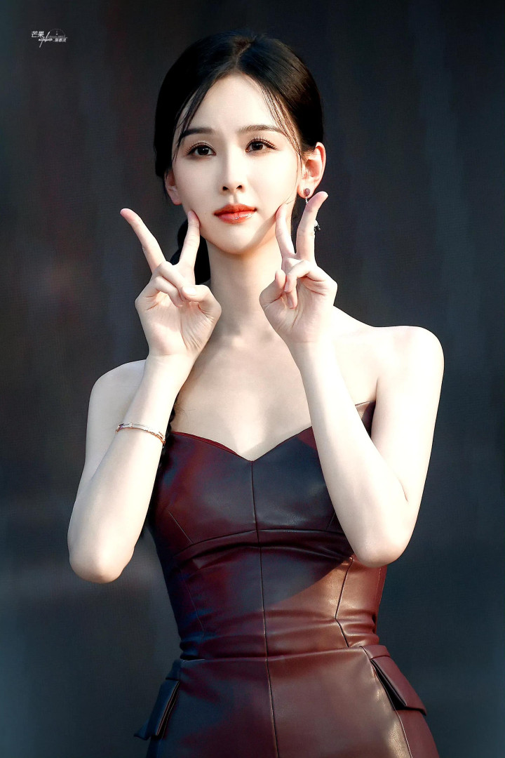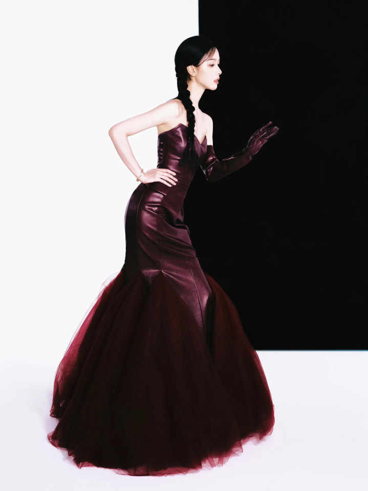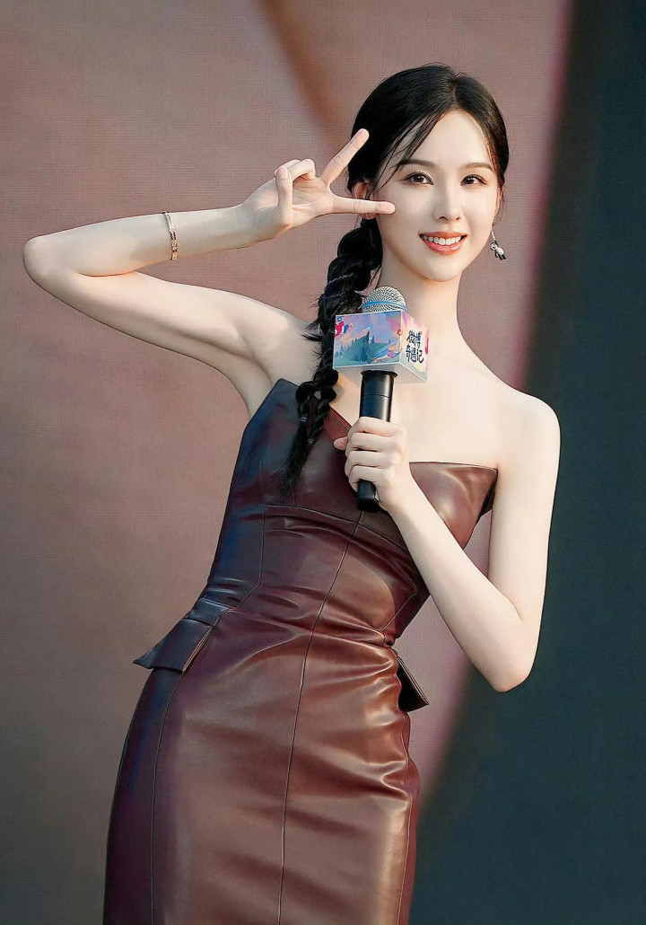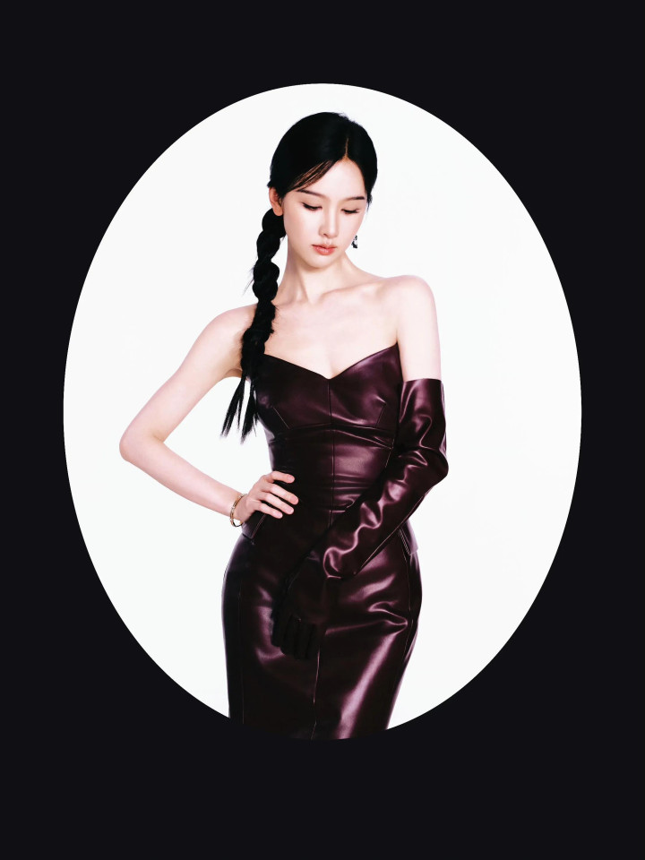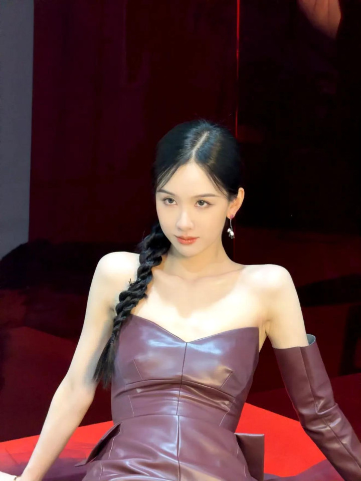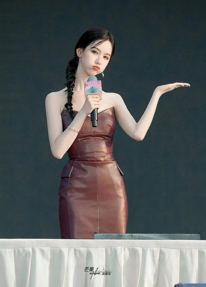 陈都灵性感抹胸皮衣
