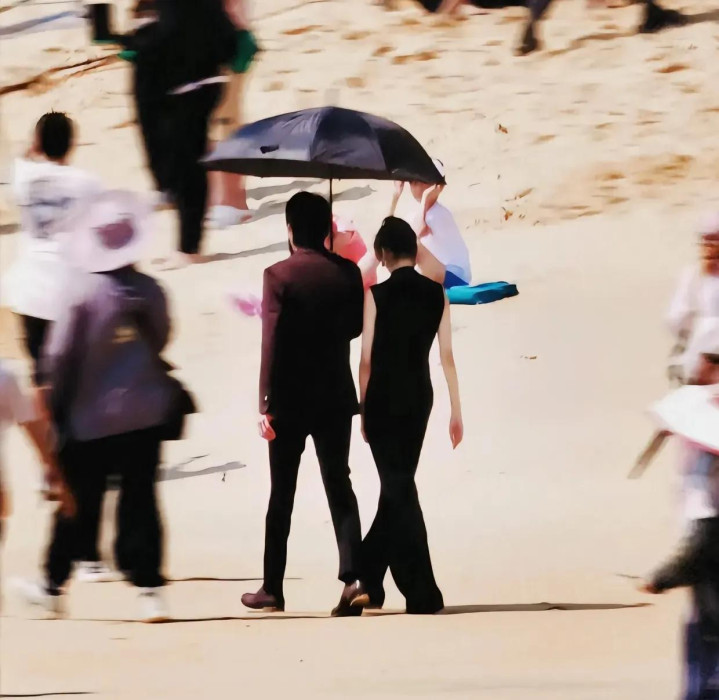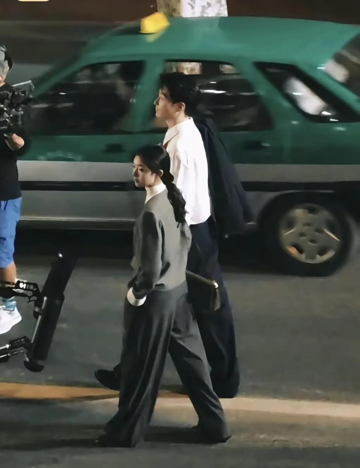 在他和窦骁主演的电视剧的路透中,傍晚散步真的是好知性温柔。