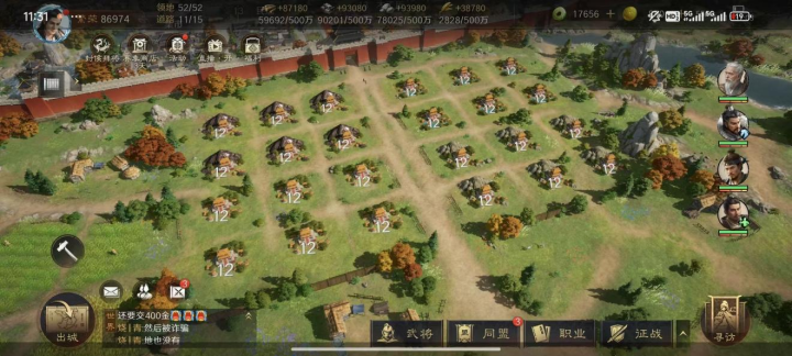 对刚接触SLG的新手来说,最头疼的往往是“机械操作”。比如铺路占资源,传统游戏需要手动点击每一格土地,稍不留神就会被对手截胡;再比如武将升级,可能要反复打低级关卡刷经验,时间全耗在重复操作上。但在《三国:谋定天下》里,这些痛点都被一一化解:自动铺路功能会智能规划路线,帮玩家快速连接关键资源点;练兵所可以自动训练部队,把“刷经验”变成后台任务;就连攻城这样的大型战役,也能通过预约攻城时间,让队伍自动参与,无需守在屏幕前等开打。